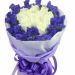 [材料]:9枝、11枝白玫瑰,蓝色勿忘我外围 [包装]:米色和紫色瓦楞纸圆形精美包装,紫色丝带蝴蝶