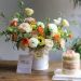洋桔梗多头玫瑰弯月型抱抱桶插花