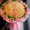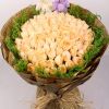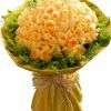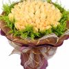 [材 料]:99枝香槟玫瑰,黄莺外围搭配 [包 装]:棕色高档牛皮纸,棕色纱网外围包装或卷边纸