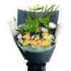 [材料]:11枝香槟玫瑰,紫边洋桔梗,3枝绿掌,丝带草搭配。 [包装]:白色棉纸和泡泡纸内衬,蓝色