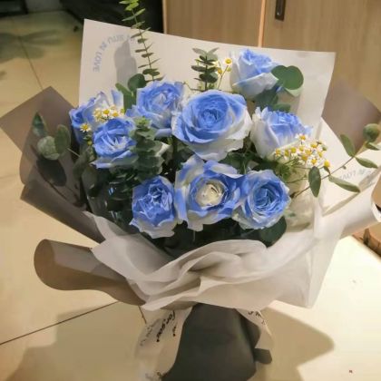 蓝色爱恋-9枝碎冰蓝玫瑰送女友老婆闺蜜情人节七夕节女神节圣诞节爱情友情周年