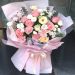 【花材】:粉玫瑰5枝,香槟玫瑰1枝,白玫瑰1枝,粉康乃馨6枝,白色洋桔梗,粉小菊,白小菊,尤加利搭配