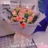爱莎玫瑰11枝尤加利麦秆菊搭配精美包装。