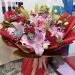 红玫瑰粉玫瑰11枝,粉色百合2枝,红豆洋桔梗满天星搭配,精美花束