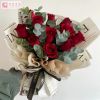 红玫瑰11枝,尤加利搭配,白色英文版包装纸包装。