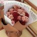 卡布奇诺玫瑰16枝,红玫瑰5枝,珠链1条,字母纸圆形包装。