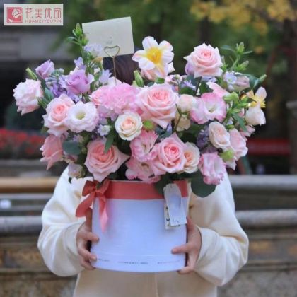 【惊喜相遇】粉玫瑰紫玫瑰洋桔梗风铃抱抱桶母亲节520毕业送亲友