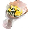材料:15枝黄玫瑰,小雏菊满天星搭配。 包装:香槟色雾面纸半包围圆形精美包装。