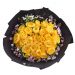 材料:33枝黄玫瑰,相思梅围绕。 包装:黑色卡纸圆形精美包装。