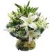 [材料]:12枝白色多头香水百合,黄英,满天星点缀