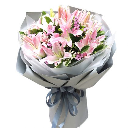 浪漫之约-19朵粉百合花束送女友老婆爱情情人节春节圣诞节