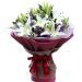 [材料]:9枝多头白色香水百合,满天星,勿忘我搭配。 [包装]:白色棉纱内衬,酒红色平面纸圆形包装