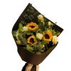 [材料]:3枝精选向日葵,尤加利,洋桔梗搭配。 [包装]:玻璃纸内衬,黑色卡纸外包,香槟色字母缎带
