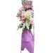 [材料]:百合,绣球,玫瑰,白兰,金鱼花,散尾叶,八角叶。 [包装]:竹子三脚架,粉色雾面纸包装,精