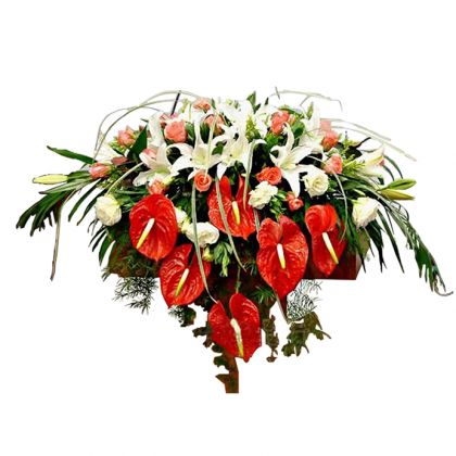 [包装]:讲台专用花泥底座,散尾叶,丝带草,天门冬等搭配。