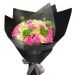 [材料]:11枝苏醒玫瑰,白色绣球1枝,洋桔梗搭配。 [包装]:黑色雾面纸包装,黑白色条纹丝带蝴蝶