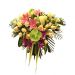 [材料]:粉百合,香槟玫瑰,紫色千代兰6枝,白色紫罗兰6枝,绿掌2片。