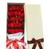 [材料]:精选19枝红玫瑰+配花礼盒。 [包装]:长形精品礼盒精致包装