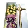 [材料]:香槟玫瑰11枝,黄英搭配。 [包装]:长形精品礼盒精致包装。