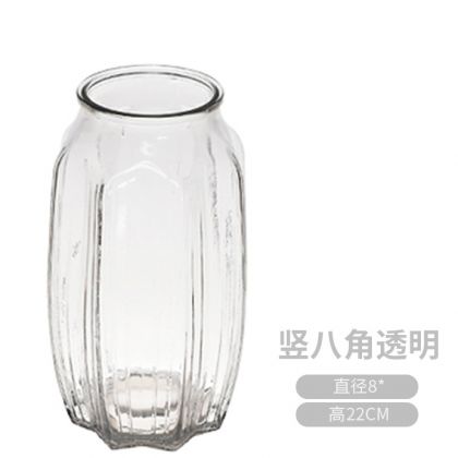 玻璃花瓶-竖八角系列四选一 创意玻璃花瓶透明摆件客厅插花富贵竹水养家用北欧干花百合鲜花瓶 烟灰