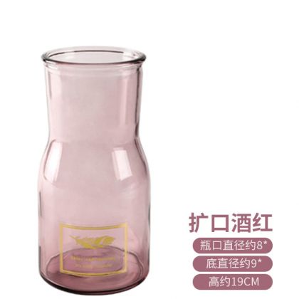 玻璃花瓶-扩口系列四选一 创意玻璃花瓶透明摆件客厅插花富贵竹水养家用北欧干花百合鲜花瓶 卡其