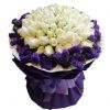 [材料]:任选66、99枝白玫瑰,勿忘我外围 [包装]:白色手揉纸内衬,紫色包装纸圆形包装,紫色蝴