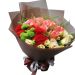 [材料]:19枝戴安娜玫瑰,红色康乃馨5枝,雏菊、黄英、洋桔梗搭配。