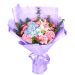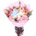 19枝粉康乃馨,1枝3头白色香水百合,1枝绣球,尤加利 雏菊搭配。