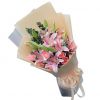 18朵粉色百合,9枝戴安娜玫瑰,尤加利搭配。