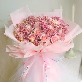爆款-27枝香槟玫瑰满天星花束送女友老婆男友父亲老师领导客户闺蜜情人节七夕节父亲节教师节520