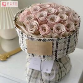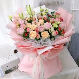 温婉佳人-粉玫瑰香槟玫瑰混搭花束送女友老婆闺蜜生日爱情友情周年情人节七夕节圣诞节女神节520