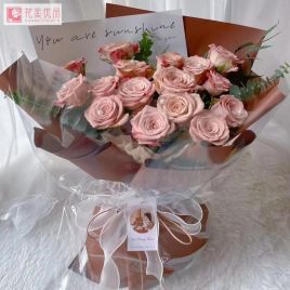【轻声细语】粉色荔枝玫瑰19枝送老婆送闺蜜送客户生日祝福母亲节520情人节