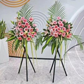 18枝粉色康乃馨,2枝3头粉百合,绿色洋桔梗,黄英搭配自营