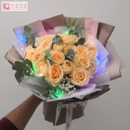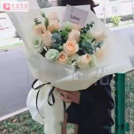 粉佳人6枝,艾莎玫瑰5枝,香槟玫瑰6枝,多头玫瑰3枝,白百合1枝自营 -